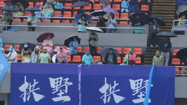 雨中助威,热情不减 他们是绿茵场上最温暖的后盾
